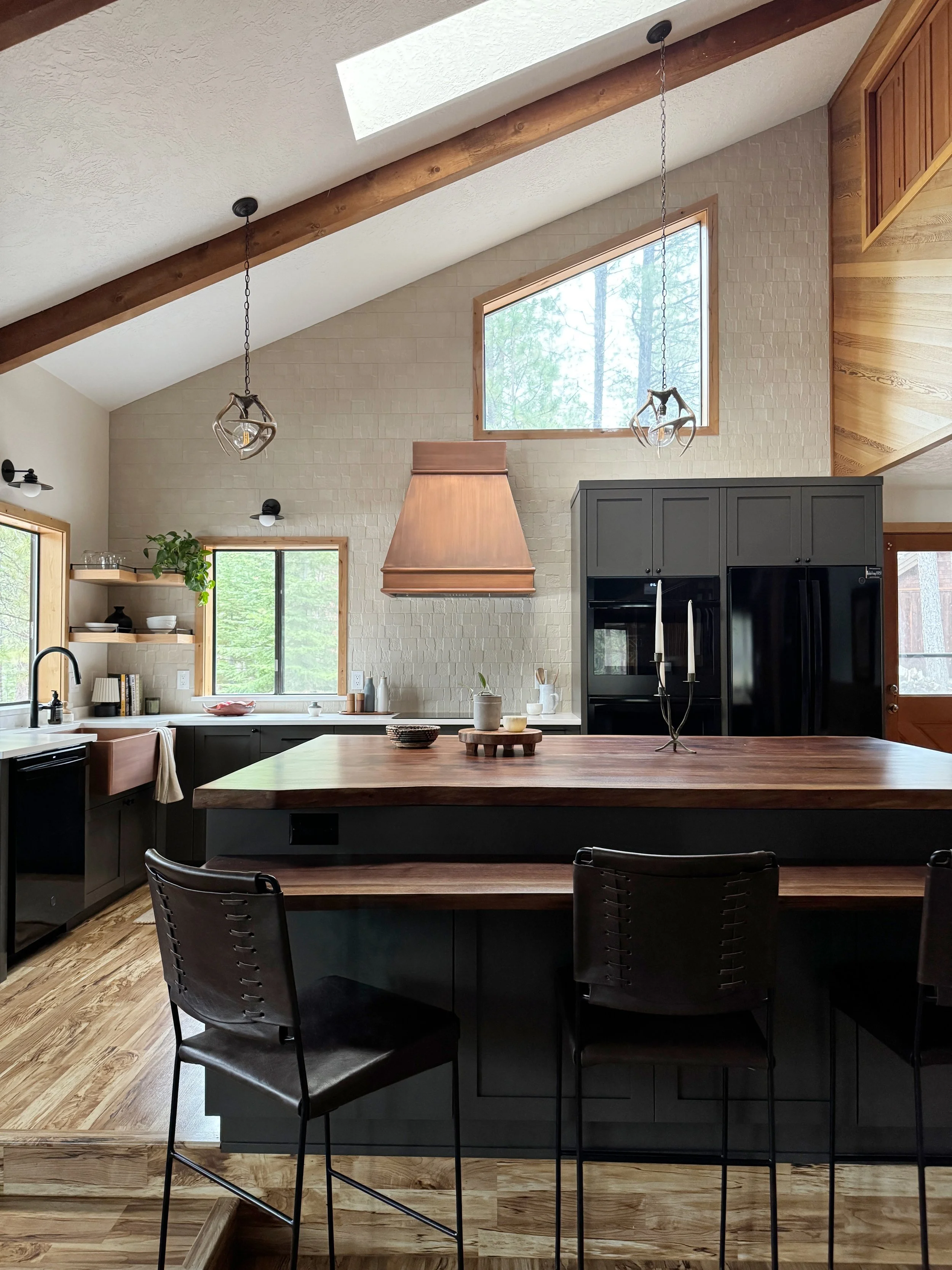 Our clients approached us to refresh their 1970s home in Black Butte Ranch. Like many homes in this resort community, it featured extensive wood paneling and distinctive architectural elements such as vaulted ceilings, varied window sizes, and plenty of woodsy character. A few key changes (ok, a full remodel WITH a few key changes) made a tremendous impact on this space.
