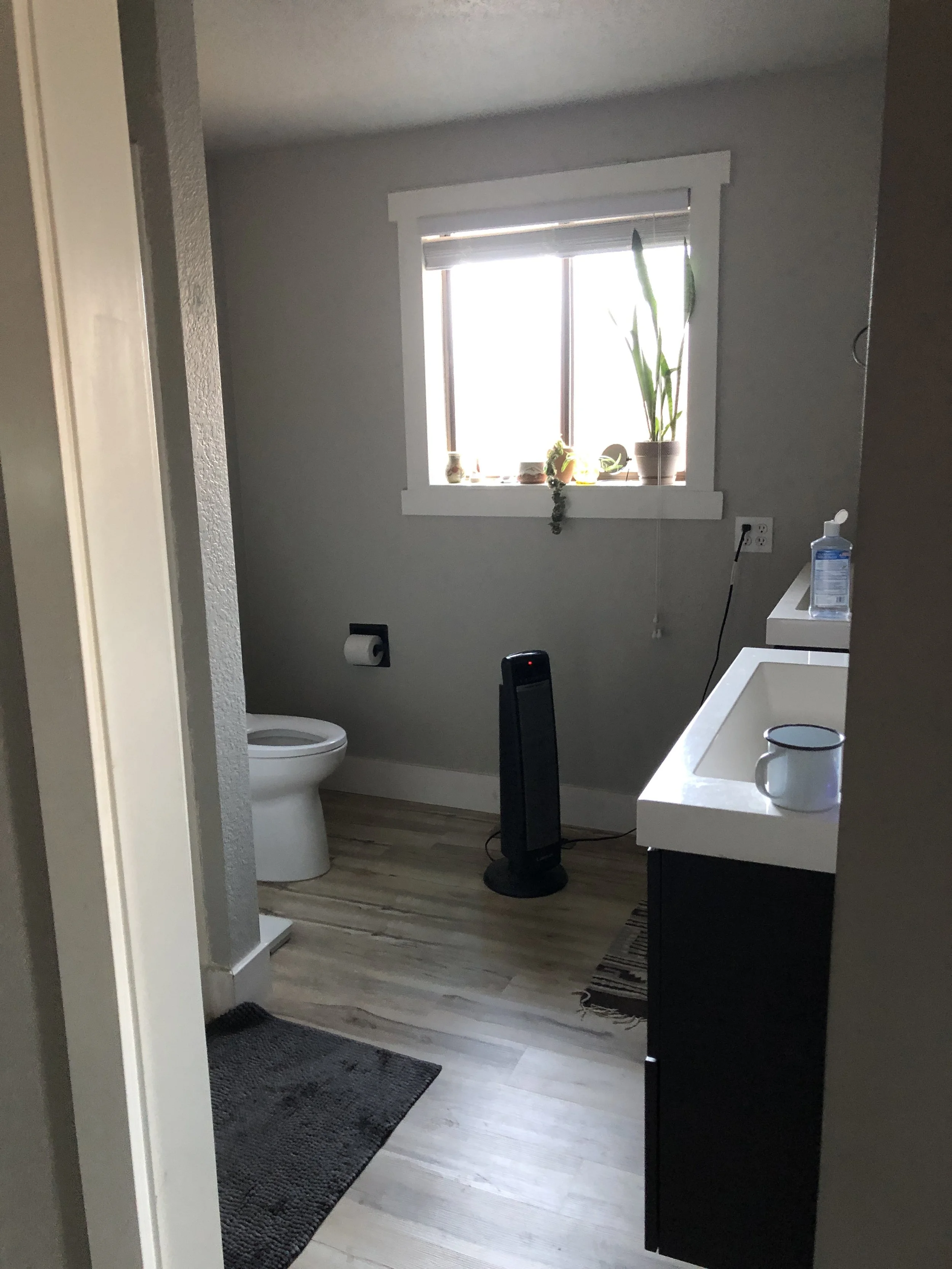 This 1980s ranch home was very outdated and had a lot of walls where they shouldn’t be, resulting in a small, cave-like kitchen. Truly the heart and center of this home, with living space and bedrooms accessible from multiple sides of the kitchen, the goal was to open it all up! Walls were removed, skylights were added and the space was instantly transformed. A modern take on knotty Alder cabinets lends a rustic feel that is contrasted with light, earthy finishes and mixed metals. Functionality was of utmost importance, with an island full of drawers to house the everyday items and a flow that is as conducive to entertaining as it is to wrangling the kiddos while making dinner.